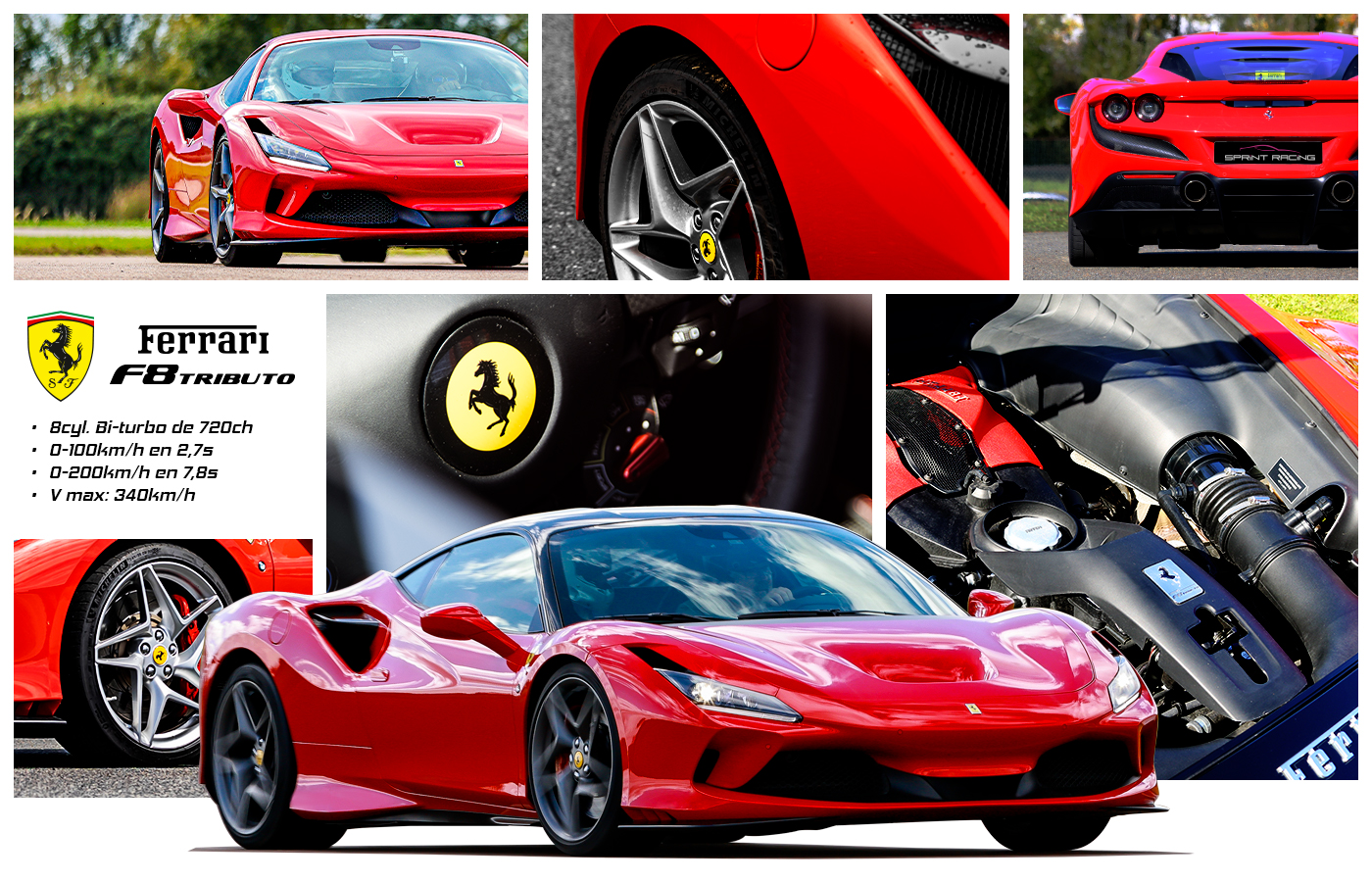 La Ferrari F8 Tributo est équipée d’un moteur de 3.9l bi-turbocompressé de 720ch et d’une boite de vitesse à double embrayage d’une efficacité inégalée. Son moteur V8 a remporté le prix de « Meilleur moteur » dans la catégorie du « moteur international de l'année » de 2016 à 2019. S’agit-il pour Ferrari d’un hommage ultime ou d’une célébration, seul l’avenir nous le dira mais en attendant, venez la découvrir avec Sprint Racing.