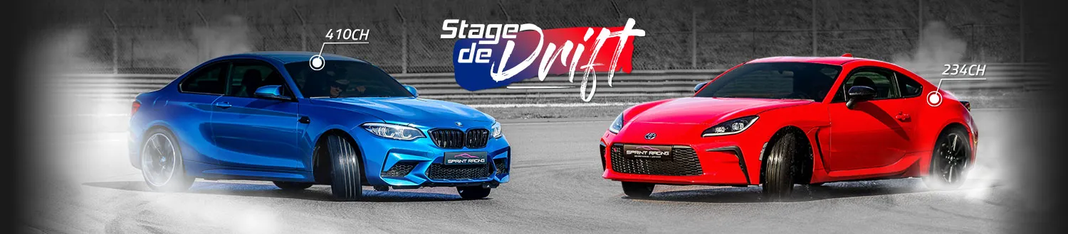 Sprint Racing vous propose d’apprendre à maitriser le pilotage en glisse sur piste arrosée au volant de la Toyota GR86 de 234ch, de la Porsche Cayman S de 320ch et de la BMW M2 de 410ch. Nos moniteurs vous enseigneront les fondamentaux du pilotage sur une piste basse adhérence en déclenchant la dérive grâce à une trajectoire et un freinage adapté pour ensuite maintenir cette dérive et être prêt à enchainer le virage suivant. Que du bonheur et des sensations incroyables en perspective !